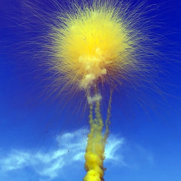Желтый салют дымовой цветок 72 залпа
